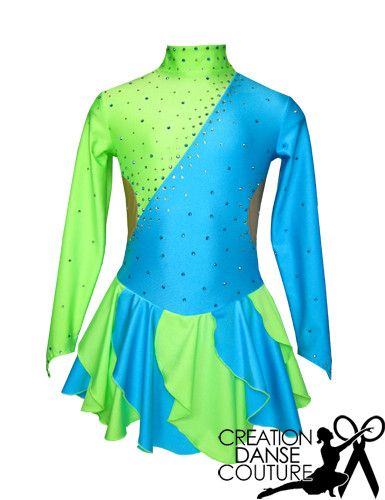 Tissu: lycra vert fluo, bleu turquoise.